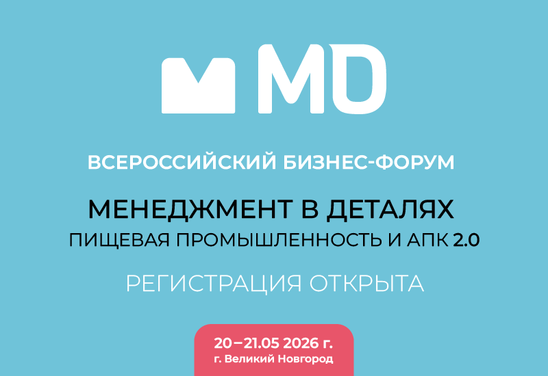 «Менеджмент в деталях. Пищевая промышленность и АПК 2.0» – это всероссийский бизнес-форум, объединяющий представителей пищевой отрасли и агропромышленного комплекса. Форум пройдет в Великом Новгороде 20–21 мая 2026 года.