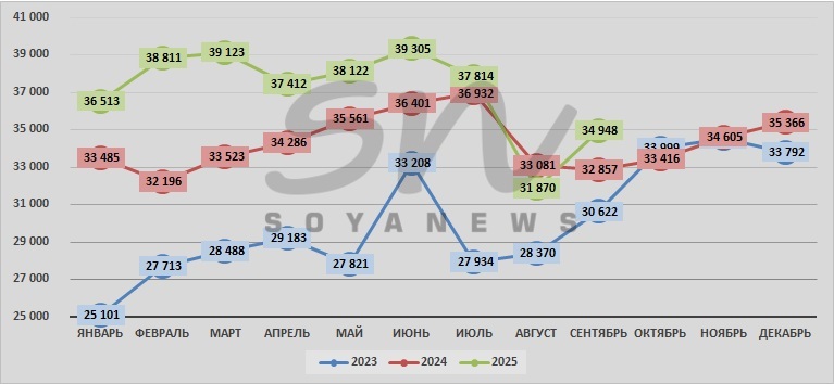 | сентябрь | 30 622 | 32 857 | 34 948 |