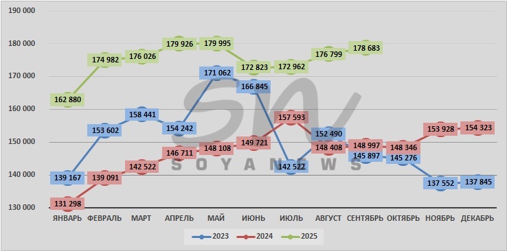 | сентябрь | 145 897 | 148 997 | 178 683 |