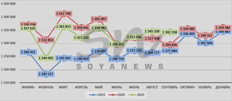 | ноябрь | 1 301 604 | 1 330 317 | |