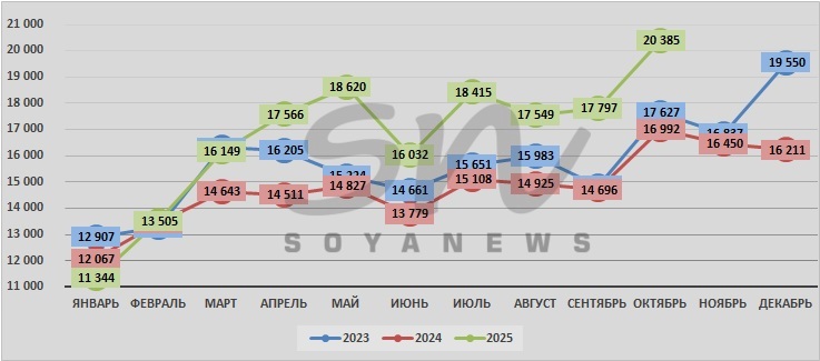 | сентябрь | 14 835 | 14 696 | 17 797 |