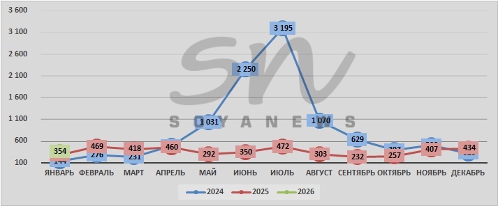 | январь | 144 | 278 | 354 |