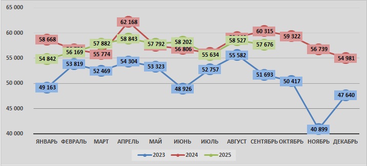 | сентябрь | 51 693 | 60 315 | 57 676 |