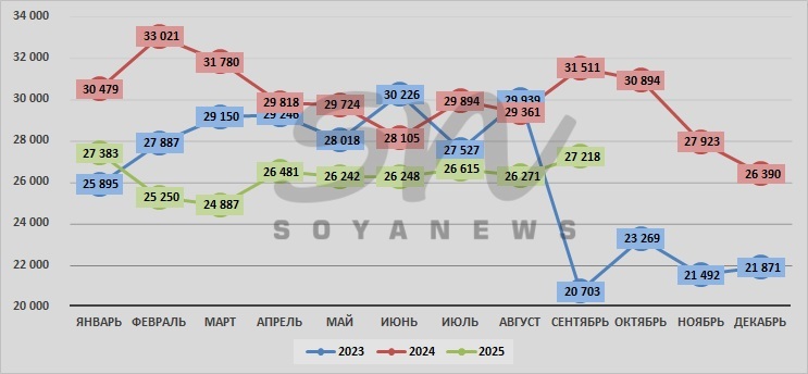 | сентябрь | 20 703 | 31 511 | 27 218 |