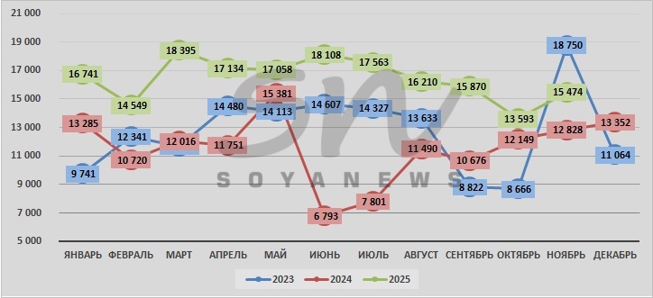 | июль | 14 327 | 7 801 | 17 563 |