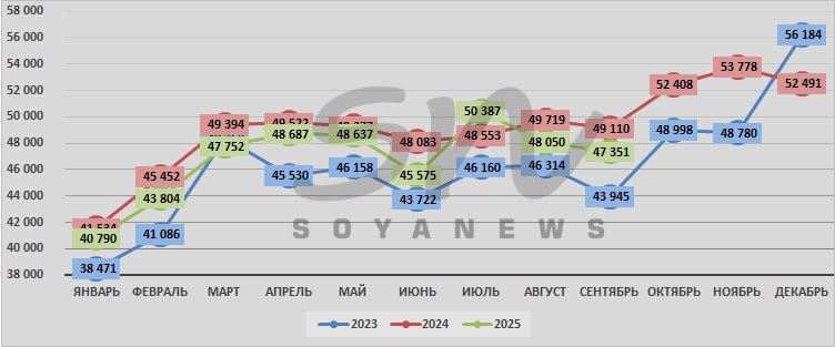| сентябрь | 43 945 | 49 110 | 47 351 |