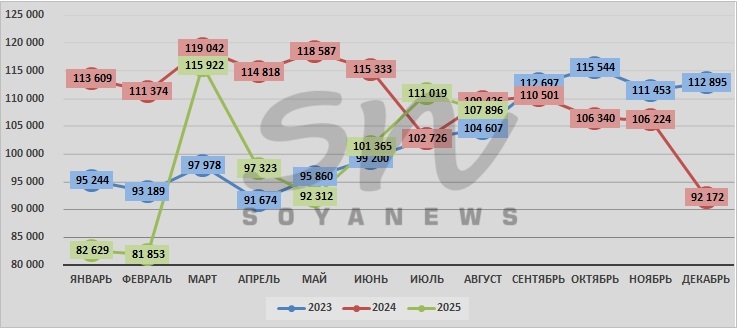 За 8 месяцев 2025 года по сравнению с аналогичным периодом 2024 года производство данного продукта в России сократилось на 12,7%.