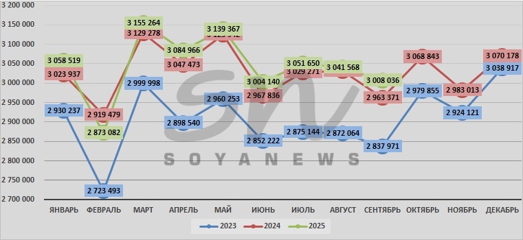 | сентябрь | 2 837 971 | 2 963 371 | 3 008 036 |
