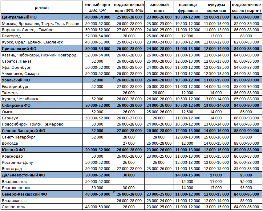 Цены (руб./т, без учёта доставки) по данным SoyaNews