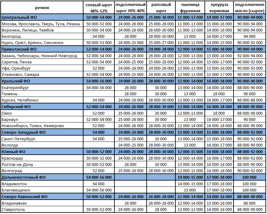 Цены (руб./т, без учёта доставки) по данным SoyaNews