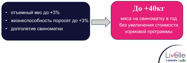 Используя комплексный подход для свиноматок Livelle, наши партнёры уже получают дополнительно до +10% мяса на свиноматку без увеличения себестоимости кормления, либо с её снижением.
