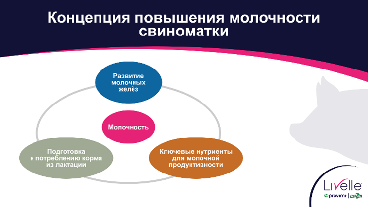 Для подготовки свиноматки к периоду лактации и раскрытию в полной мере ее генетического потенциала компания Cargill разработала эффективную концепцию повышения молочности свиноматки, которая включает в себя (рис. 4):