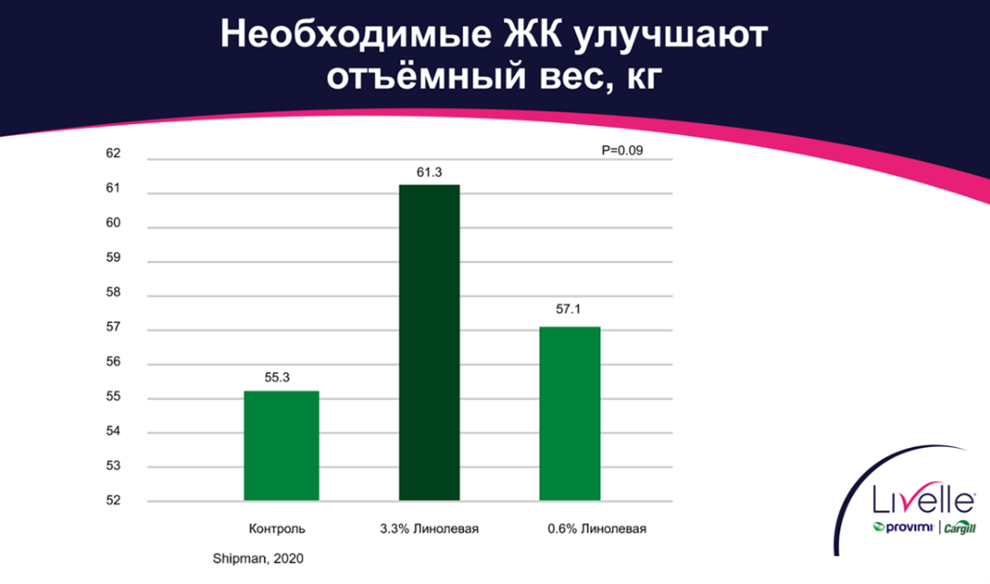 - необходимые жирные кислоты и их соотношение. Наличие в рецепте лактирующей свиноматки омега-3 и омега-6 жирных кислот снижают смертность мелких поросят и улучшают отъемный вес (рис. 7).