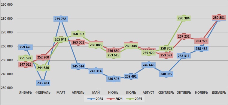 | октябрь | 253 311 | 267 231 | 280 384 |