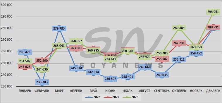 | декабрь | 280 422 | 280 831 | 293 951 |