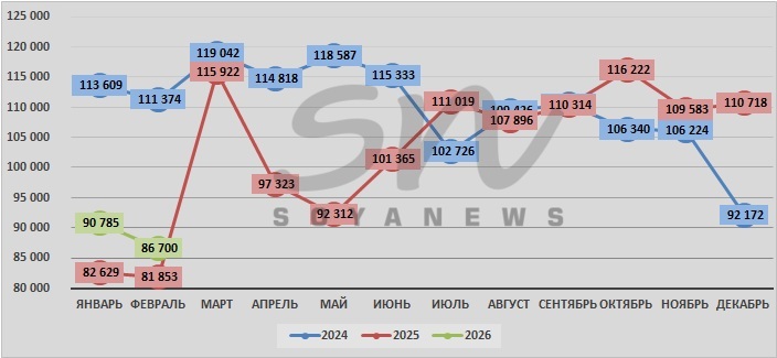 В феврале 2026г. в России** произвели 86,7 тыс.тонн кормовых смесей и концентратов - это на 4,5% меньше, чем месяцем ранее, и на 5,9% больше, чем в феврале 2025г.