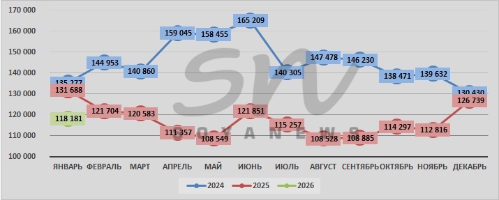 | январь | 135 277 | 131 688 | 118 181 |