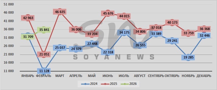 | январь | 32 078 | 42 963 | 31 709 |