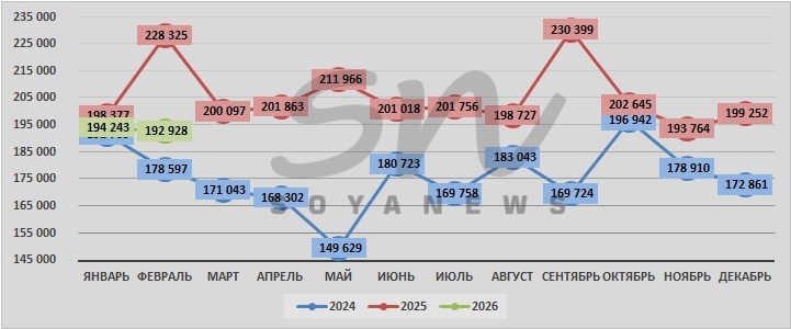 | январь | 191 709 | 198 377 | 194 243 |