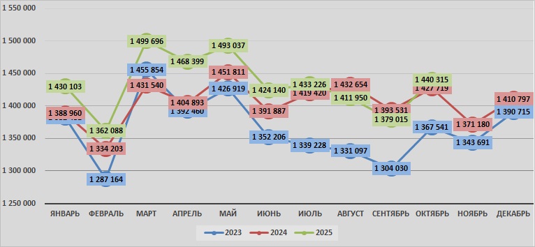 | сентябрь | 1 304 030 | 1 393 531 | 1 379 015 |