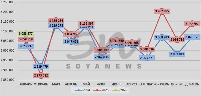 | январь | 3 023 937 | 3 058 519 | 3 088 277 |