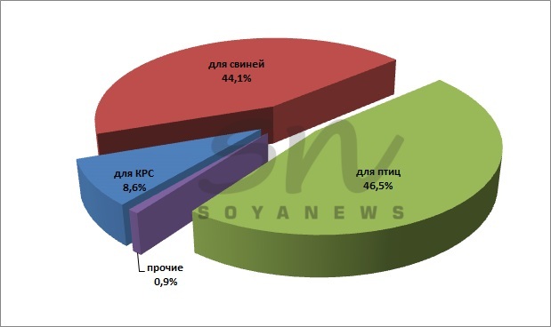 Структура производства комбикормов в России по видам животных (по годовым данным 2025 года) |
