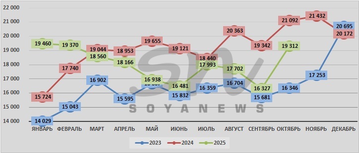 | октябрь | 16 346 | 21 092 | 19 312 |