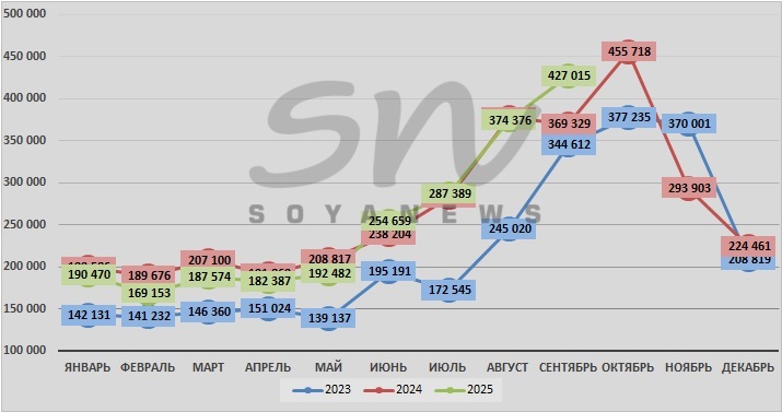 | сентябрь | 344 612 | 369 329 | 427 015 |