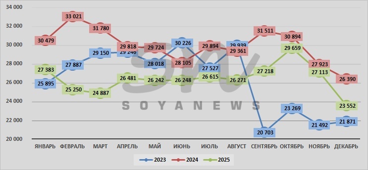 | декабрь | 21 871 | 26 390 | 23 552 |